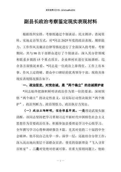 / 【七哥公文】2026年:副县长政治考察鉴定现实表现材料+更多免费公文+VX:QiGeGongWen2024