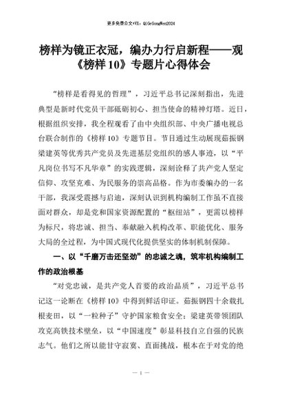【七哥公文】2026年:榜样为镜正衣冠,编办力行启新程——观《榜样10》专题片心得体会+更多免费公文+VX:QiGeGongWen2024 - 七哥-AI智库