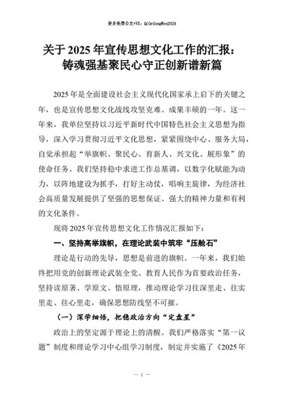 【七哥公文】2026年:关于2025年宣传思想文化工作的汇报:铸魂强基聚民心守正创新谱新篇+更多免费公文+VX:QiGeGongWen2024