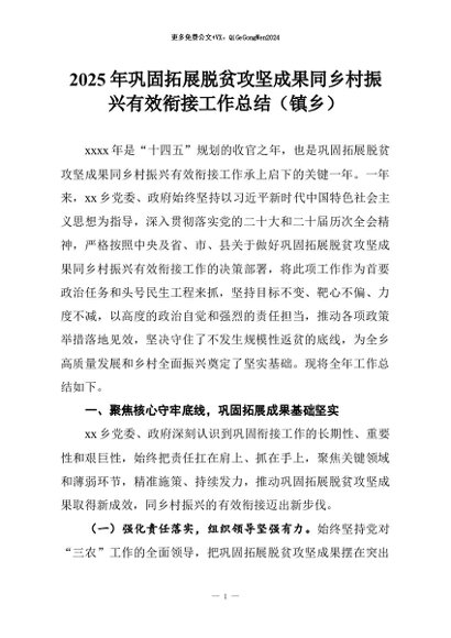 【七哥公文】2026年:2025年巩固拓展脱贫攻坚成果同乡村振兴有效衔接工作总结(镇乡)+更多免费公文+VX:QiGeGongWen2024