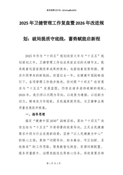 【七哥公文】2026年:2025年卫健管理工作复盘暨2026年改进规划:破局提质守底线,蓄势赋能启新程_副本+更多免费公文+VX:QiGeGongWen2024 - 七哥-AI智库