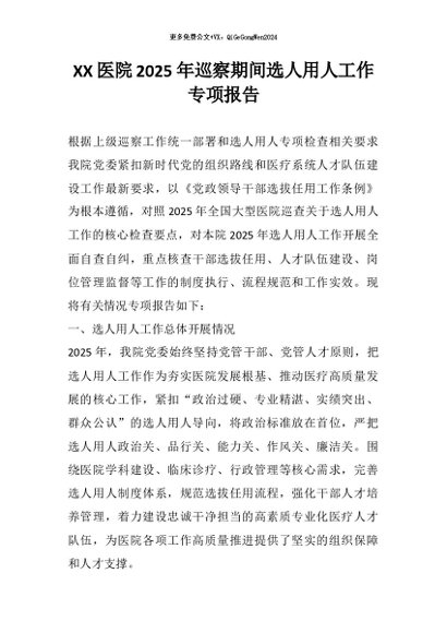 【七哥公文】2026年:XX医院2025年巡察期间选人用人工作专项报告+更多免费公文+VX:QiGeGongWen2024