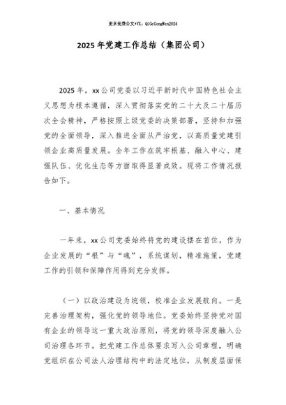 【七哥公文】2026年:2025年党建工作总结(集团公司)+更多免费公文+VX:QiGeGongWen2024