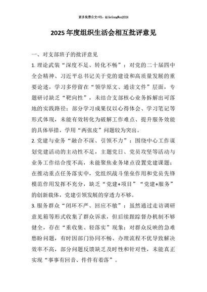 / 【七哥公文】2026年:2025年度组织生活会相互批评意见+更多免费公文+VX:QiGeGongWen2024