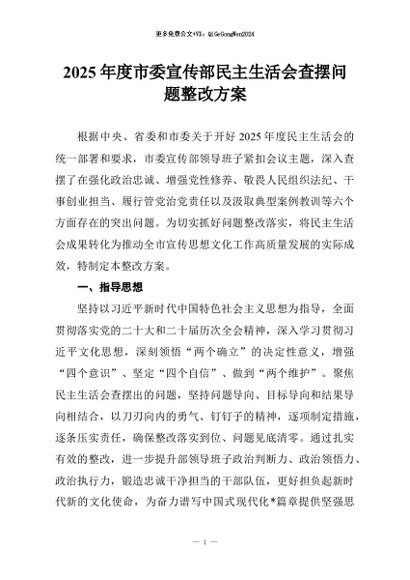 【七哥公文】2026年:2025年度市委宣传部民主生活会查摆问题整改方案+更多免费公文+VX:QiGeGongWen2024