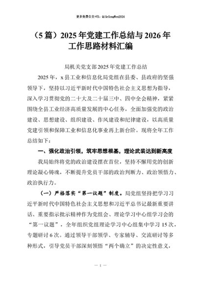 【七哥公文】2026年:(5篇)2025年党建工作总结与2026年工作思路材料汇编+更多免费公文+VX:QiGeGongWen2024
