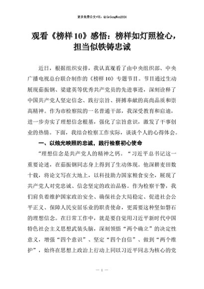 【七哥公文】2026年:观看《榜样10》感悟:榜样如灯照检心,担当似铁铸忠诚+更多免费公文+VX:QiGeGongWen2024