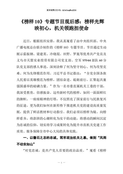 【七哥公文】2026年:《榜样10》专题节目观后感:榜样光辉映初心,机关领跑担使命+更多免费公文+VX:QiGeGongWen2024