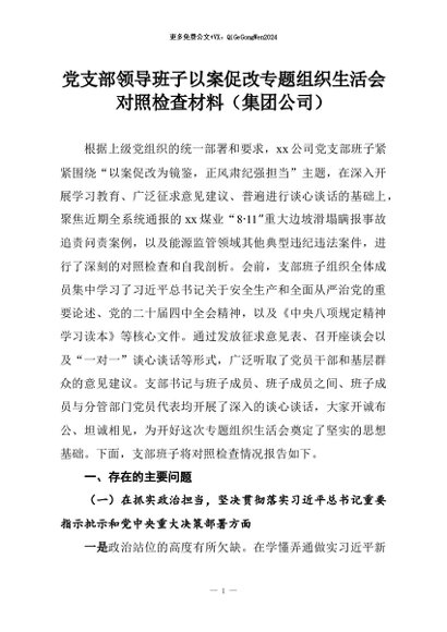 【七哥公文】2026年:党支部领导班子以案促改专题组织生活会对照检查材料(集团公司)+更多免费公文+VX:QiGeGongWen2024