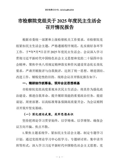 【七哥公文】2026年:市检察院党组关于2025年度民主生活会召开情况报告+更多免费公文+VX:QiGeGongWen2024