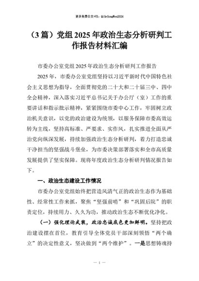 【七哥公文】2026年:(3篇)党组2025年政治生态分析研判工作报告材料汇编+更多免费公文+VX:QiGeGongWen2024