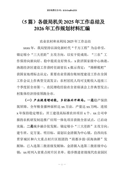 【七哥公文】2026年:(5篇)各级局机关2025年工作总结及2026年工作规划材料汇编+更多免费公文+VX:QiGeGongWen2024