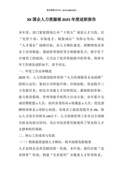 / 【七哥公文】2026年:XX国企人力资源部2025年度述职报告+更多免费公文+VX:QiGeGongWen2024