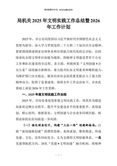 【七哥公文】2026年:局机关2025年文明实践工作总结暨2026年工作计划+更多免费公文+VX:QiGeGongWen2024 - 七哥-AI智库