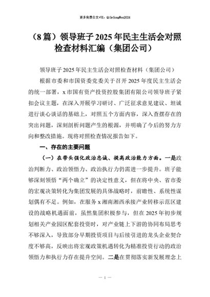 【七哥公文】2026年:(8篇)领导班子2025年民主生活会对照检查材料汇编(集团公司)+更多免费公文+VX:QiGeGongWen2024 - 七哥-AI智库