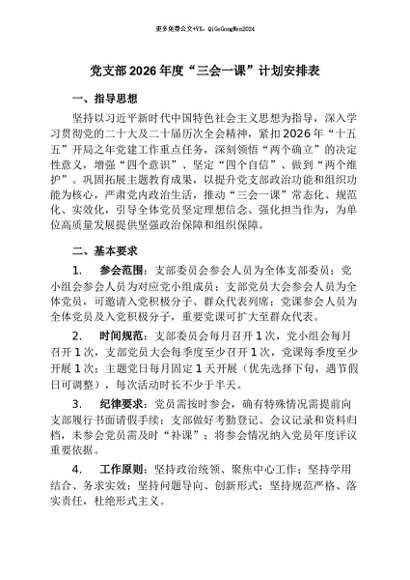 【七哥公文】2026年:党支部2026年度“三会一课”计划安排表+更多免费公文+VX:QiGeGongWen2024 - 七哥-AI智库