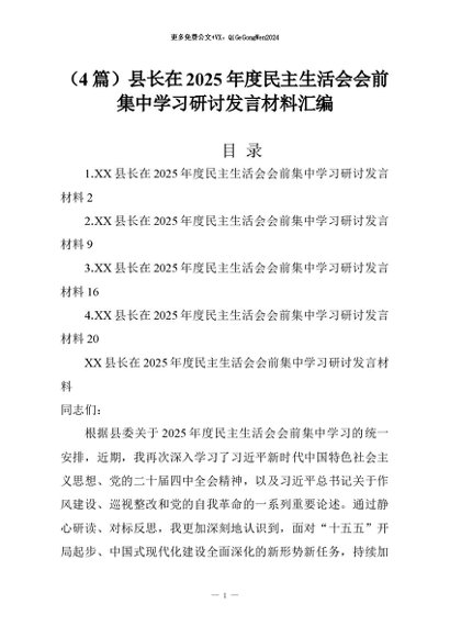 【七哥公文】2026年:(4篇)县长在2025年度民主生活会会前集中学习研讨发言材料汇编+更多免费公文+VX:QiGeGongWen2024
