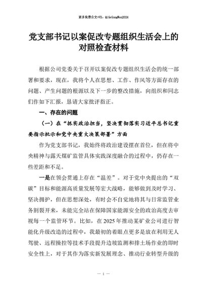 【七哥公文】2026年:党支部书记以案促改专题组织生活会上的对照检查材料+更多免费公文+VX:QiGeGongWen2024