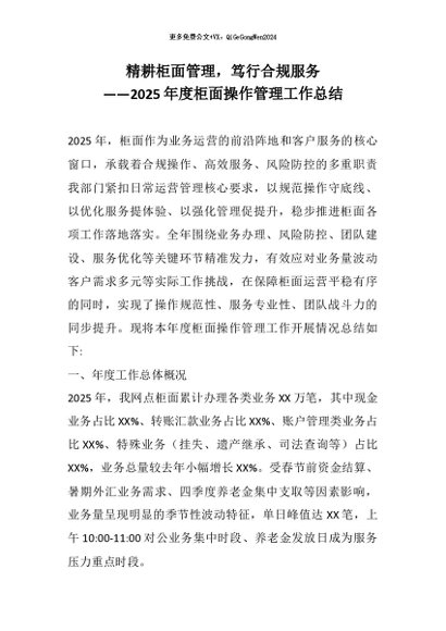 【七哥公文】2026年:精耕柜面管理,笃行合规服务——2025年度柜面操作管理工作总结+更多免费公文+VX:QiGeGongWen2024