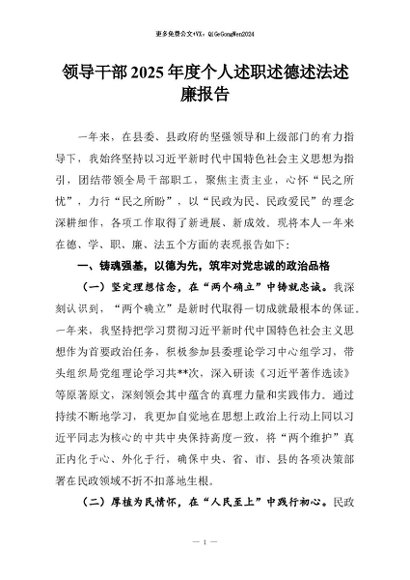 / 【七哥公文】2026年:领导干部2025年度个人述职述德述法述廉报告+更多免费公文+VX:QiGeGongWen2024