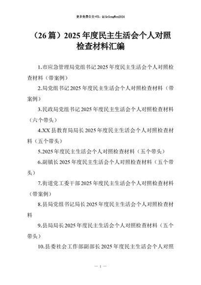 【七哥公文】2026年:(26篇)2025年度民主生活会个人对照检查材料汇编+更多免费公文+VX:QiGeGongWen2024