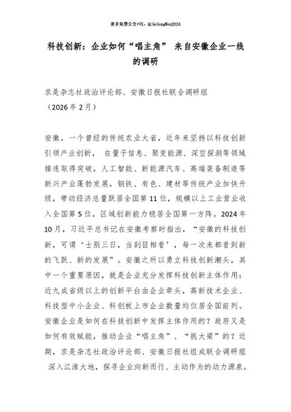 【七哥公文】2026年:科技创新:企业如何“唱主角” 来自安徽企业一线的调研_副本+更多免费公文+VX:QiGeGongWen2024