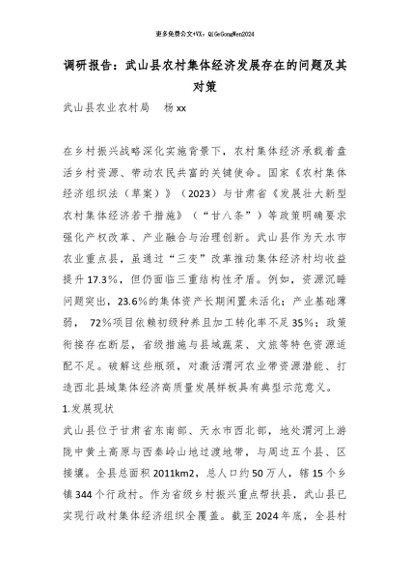 【七哥公文】2026年:调研报告:武山县农村集体经济发展存在的问题及其对策_副本+更多免费公文+VX:QiGeGongWen2024