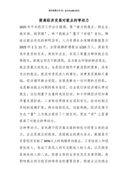 【七哥公文】2026年:提高经济发展对就业的带动力_副本+更多免费公文+VX:QiGeGongWen2024