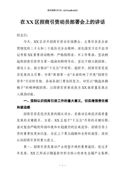 / 【七哥公文】2026年:在XX区招商引资动员部署会上的讲话+更多免费公文+VX:QiGeGongWen2024