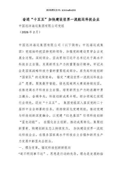 【七哥公文】2026年:奋进“十五五”加快建设世界一流航运科技企业_副本+更多免费公文+VX:QiGeGongWen2024