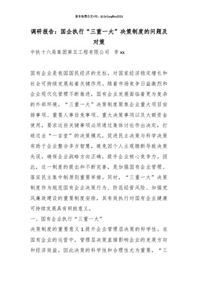 【七哥公文】2026年:调研报告:国企执行“三重一大”决策制度的问题及对策_副本+更多免费公文+VX:QiGeGongWen2024