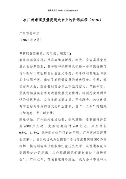 【七哥公文】2026年:在广州市高质量发展大会上的讲话实录(2026)_副本+更多免费公文+VX:QiGeGongWen2024
