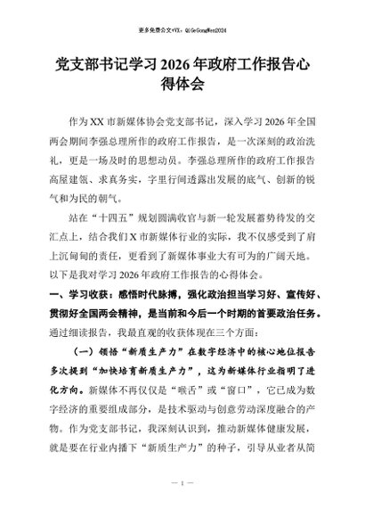 / 【七哥公文】2026年:党支部书记学习2026年政府工作报告心得体会+更多免费公文+VX:QiGeGongWen2024