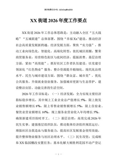 / 【七哥公文】2026年:XX街道2026年度工作要点+更多免费公文+VX:QiGeGongWen2024