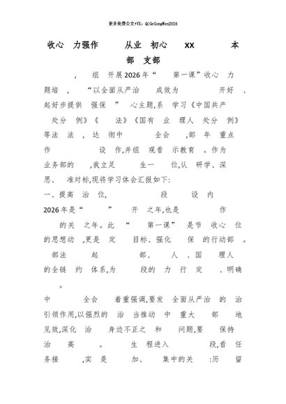 【七哥公文】2026年:收心聚力强作风廉洁从业守初心——XX城投公司本部党支部_副本+更多免费公文+VX:QiGeGongWen2024
