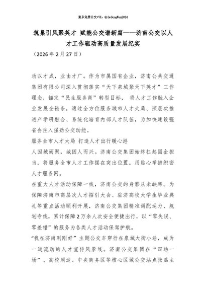 【七哥公文】2026年:筑巢引凤聚英才 赋能公交谱新篇——济南公交以人才工作驱动高质量发展纪实_副本+更多免费公文+VX:QiGeGongWen2024
