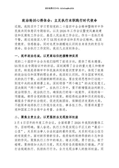 【七哥公文】2026年:政治轮训心得体会:立足执行本职践行时代使命_副本+更多免费公文+VX:QiGeGongWen2024