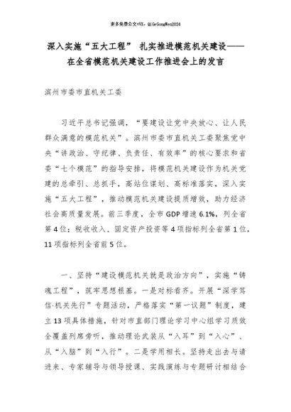 【七哥公文】2026年:深入实施“五大工程” 扎实推进模范机关建设——在全省模范机关建设工作推进会上的发言_副本+更多免费公文+VX:QiGeGongWen2024