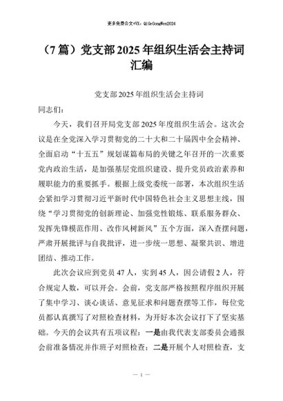 【七哥公文】2026年:(7篇)党支部2025年组织生活会主持词汇编+更多免费公文+VX:QiGeGongWen2024