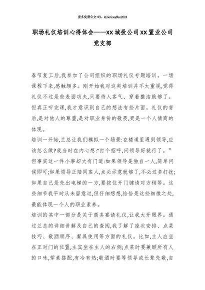 【七哥公文】2026年:职场礼仪培训心得体会——XX城投公司XX置业公司党支部_副本+更多免费公文+VX:QiGeGongWen2024