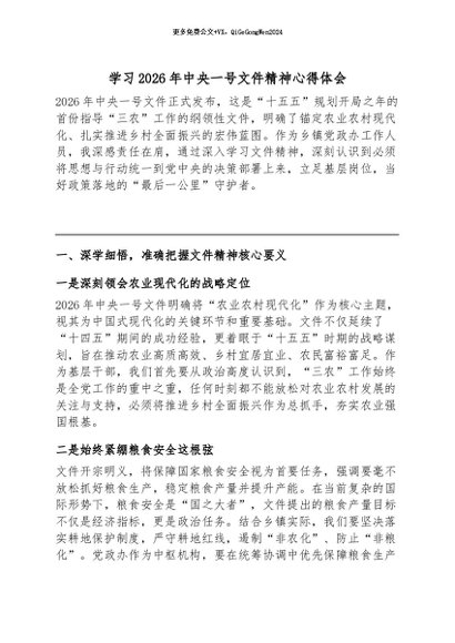 / 【七哥公文】2026年:学习2026年中央一号文件精神心得体会_副本+更多免费公文+VX:QiGeGongWen2024