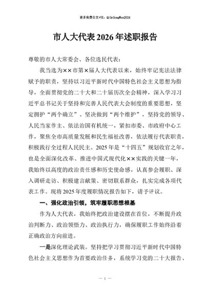 / 【七哥公文】2026年:市人大代表2026年述职报告+更多免费公文+VX:QiGeGongWen2024