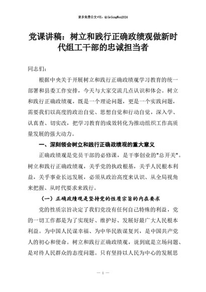 【七哥公文】2026年:党课讲稿:树立和践行正确政绩观做新时代组工干部的忠诚担当者+更多免费公文+VX:QiGeGongWen2024