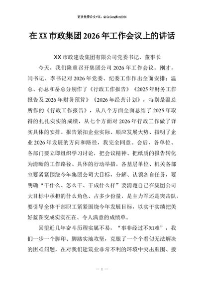 【七哥公文】2026年:在XX市政集团2026年工作会议上的讲话+更多免费公文+VX:QiGeGongWen2024