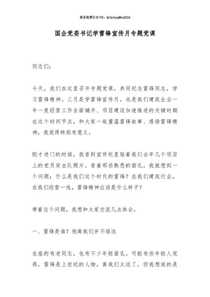 【七哥公文】2026年:国企党委书记学雷锋宣传月专题党课_副本+更多免费公文+VX:QiGeGongWen2024