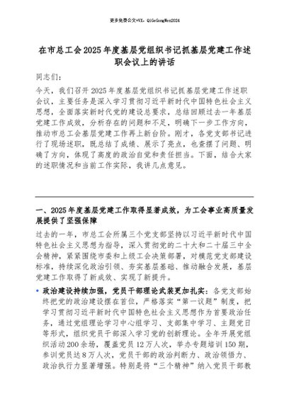 【七哥公文】2026年:在市总工会2025年度基层党组织书记抓基层党建工作述职会议上的讲话_副本+更多免费公文+VX:QiGeGongWen2024 - 七哥-AI智库