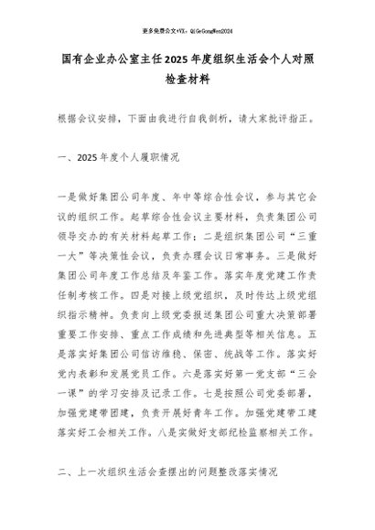 【七哥公文】2026年:国有企业办公室主任2025年度组织生活会个人对照检查材料_副本+更多免费公文+VX:QiGeGongWen2024