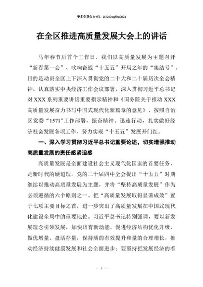 / 【七哥公文】2026年:在全区推进高质量发展大会上的讲话+更多免费公文+VX:QiGeGongWen2024