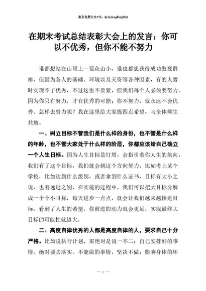 【七哥公文】2026年:在期末考试总结表彰大会上的发言:你可以不优秀,但你不能不努力+更多免费公文+VX:QiGeGongWen2024