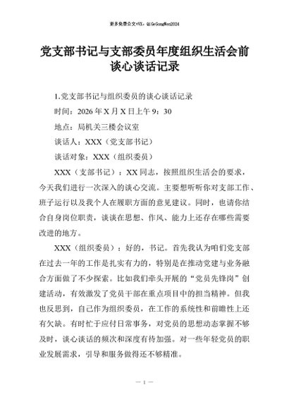 【七哥公文】2026年:党支部书记与支部委员年度组织生活会前谈心谈话记录+更多免费公文+VX:QiGeGongWen2024